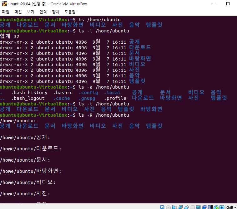 디렉토리는 뒤에 /를 첨부 표시(-F)