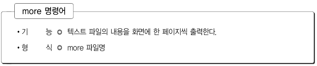 cat 과의 다른점은 긴 파일들을 한 페이지씩 단위로 보고 싶을 땐 more 사용