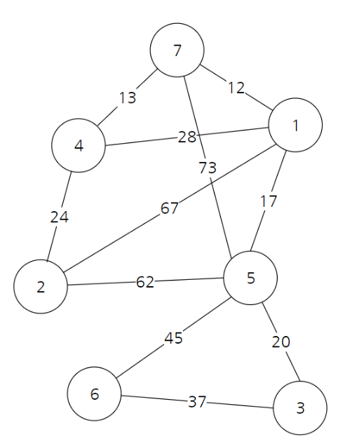신장 트리(Spanning Tree) 중에서 사용된 간선들의 가중치 합이 최소인 트리