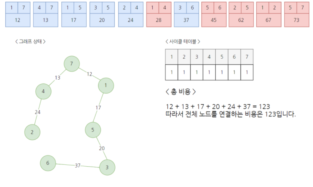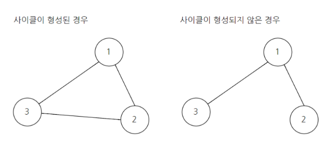 # 사이클이 발생하지 않는 경우에만 집합에 포함(=연결한다.)