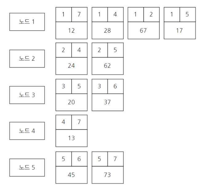 # 비용순으로 오름차순 정렬하기 위해 튜플의 첫 번째 원소를 비용으로 설정
