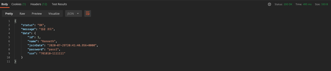 - 당연하게도 RestController의 주용도는 Json 형태로 객체 데이터를 반환하는 것